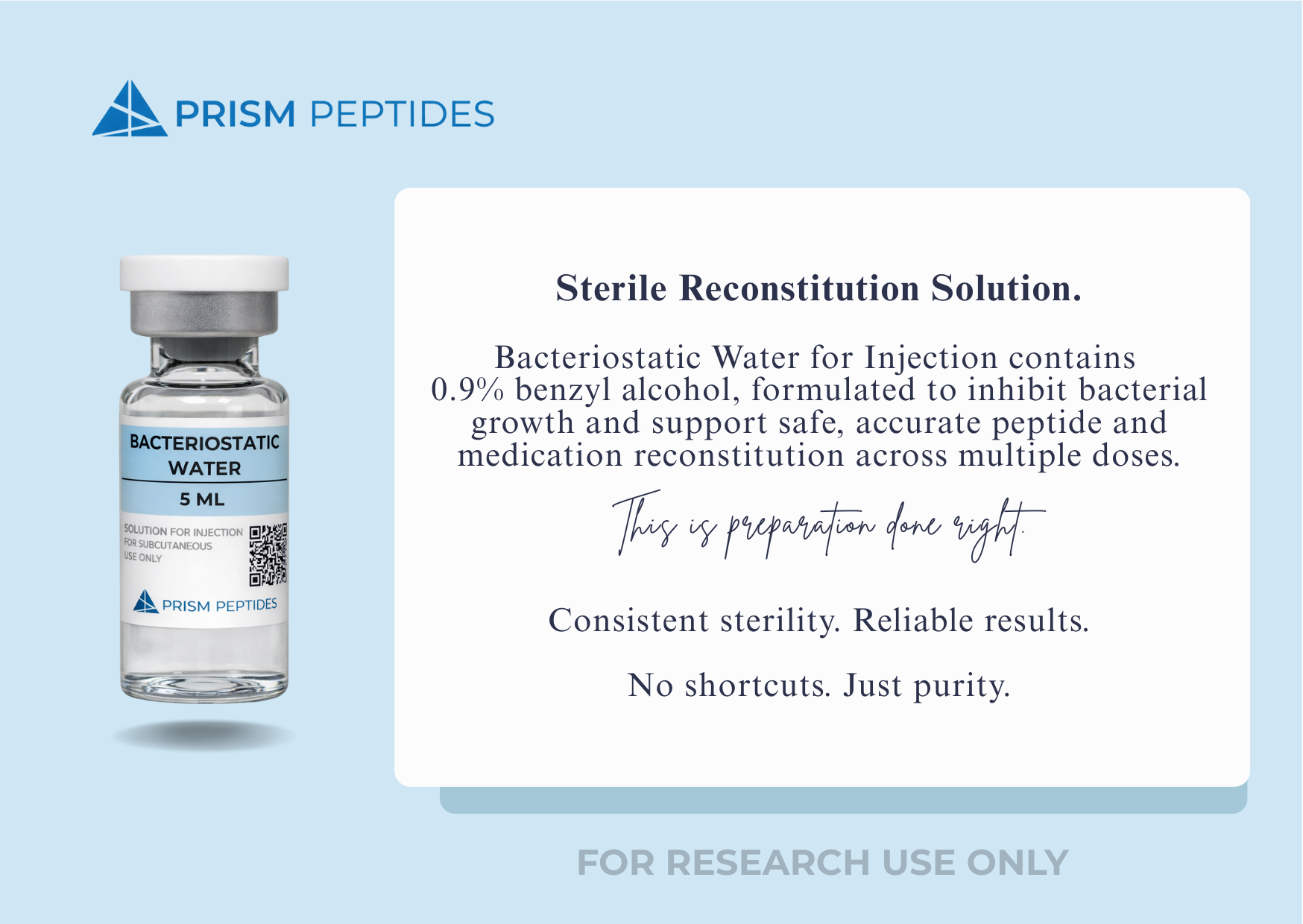 Bacteriostatic Water (BAW) is sterile water containing 0.9% benzyl alcohol, used to safely reconstitute peptides and store them for repeated use.